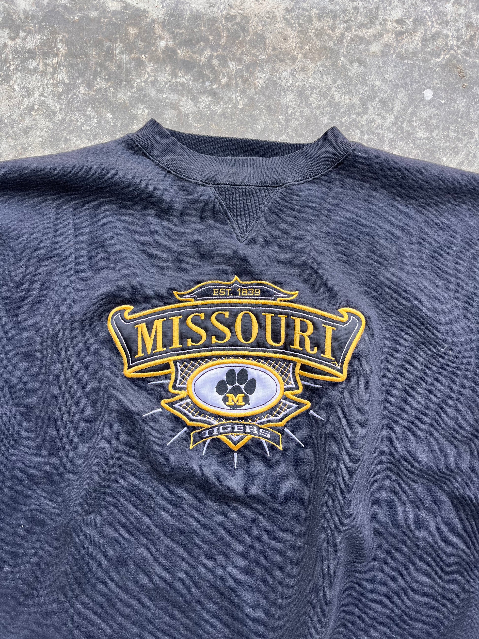The 1990’s Missouri University Sweater boasts high quality embroidery done by Midwest Embroidery Company. Show off your school pride in style with this XL sweater.